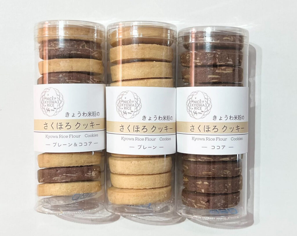 この度、弊社販売商品「きょうわ米粉のさくほろクッキー(プラスチック筒容器商品)」におきまして、一部クッキーの直径が大きくプラスチック筒状容器から取り出しづらい事例が発生いたしました。