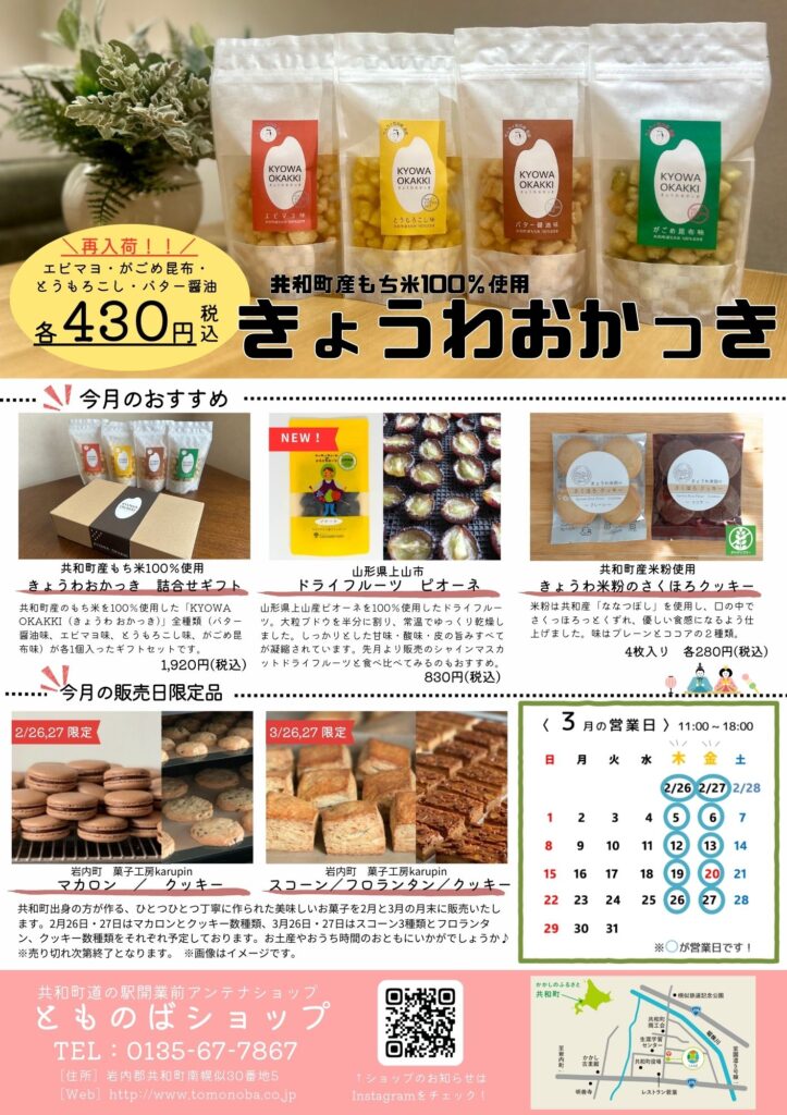 3月のとものばショップの営業日は毎週木・金曜日の11時~18時です!